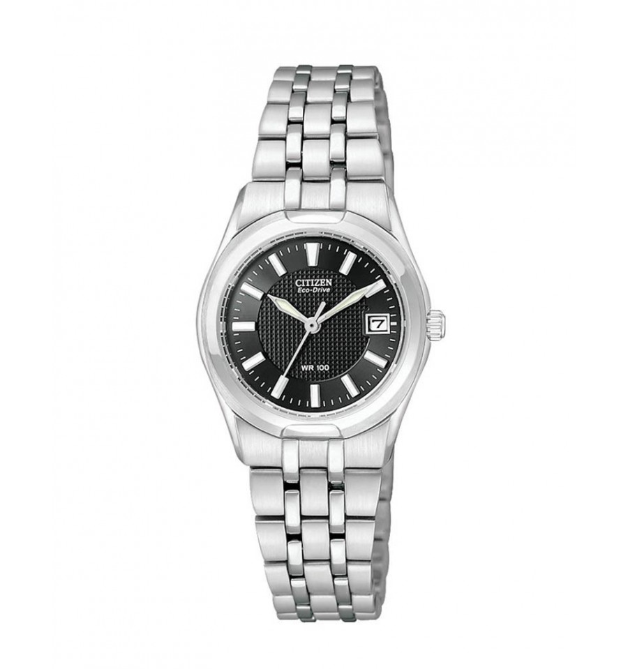 Acest ceas de mana de dama, Corso EW0940-51E, produs de renumitul producator japonez Citizen, are carcasa si bratara din otel inoxidabil in nuante argintii, cadranul negru si luminos, iar sistemul de inchidere este de tip fluture.Geamul este din cristal mineral. Ceasul converteste orice sursa de lumina fie naturala, fie artificiala, in energie utilizabila prin tehnologia Eco-Drive.