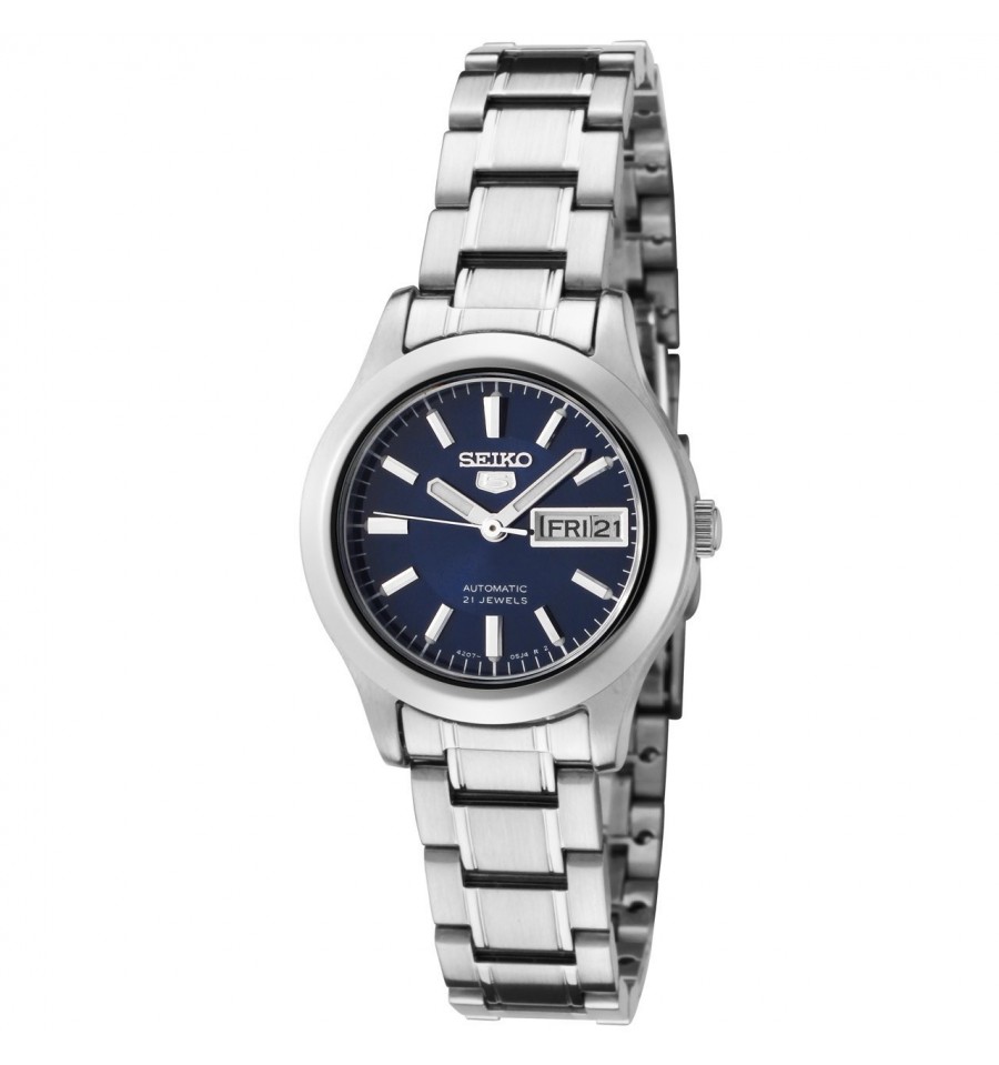 Acest ceas de mana de dama, SYMD93, produs de renumitul producator japonez Seiko, are carcasa si bratara din otel inoxidabil argintiu, cadranul albastru, geamul din cristal mineral hardlex rezistent la zgarieturi, iar sistemul de inchidere este de tip fluture. Seiko 5 SYMD93 are mecanismul automatic cu 21 Jewels.