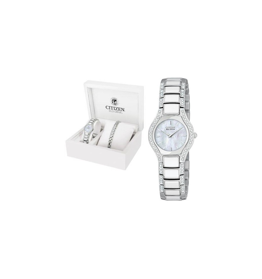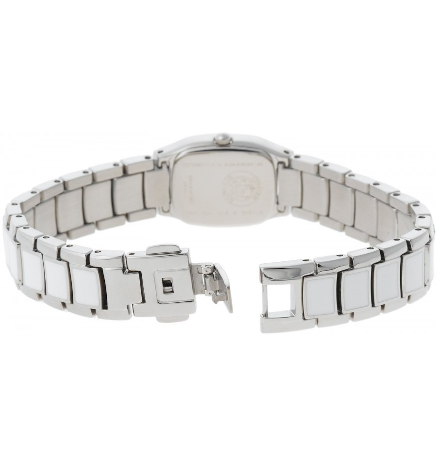 Acest ceas de mana de dama, Normandie EG2710-54E, produs de renumitul Citizen, are carcasa din otel inoxidabil alb, cadranul sidefat, iar bezelul si bratara din otel inoxidabil sunt prevazute cu cristale Swarovski. Geamul este din cristal mineral rezistent la zgarieturi. Ceasul converteste orice sursa de lumina fie naturala, fie artificiala, in energie utilizabila prin tehnologia Eco-Drive are rezerva energie de 180 zile.