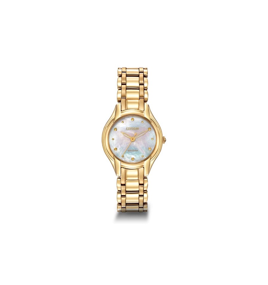 Acest ceas de mana dama, original, Silhouette EM0282-56D, produs de Citizen Waches, are carcasa si bratara din otel inoxidabil, cadranul sidefat, geamul din cristal mineral, iar sistemul de inchidere de tip deployant cu buton siguranta.