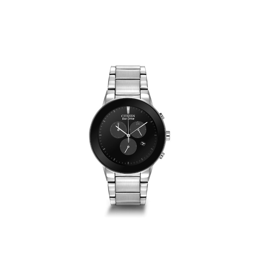 Ceasul de mana unisex original, Axiom AT2240-51E, produs de renumitul Citizen Watches, are carcasa si bratara din otel inoxidabil in nuante argintii, cadranul si bezelul negru, geamul din cristal mineral, iar sistemul de inchidere este de tip deployant. Ceasul converteste orice sursa de lumina fie naturala, fie artificiala, in energie utilizabila prin tehnologia Eco-Drive.
