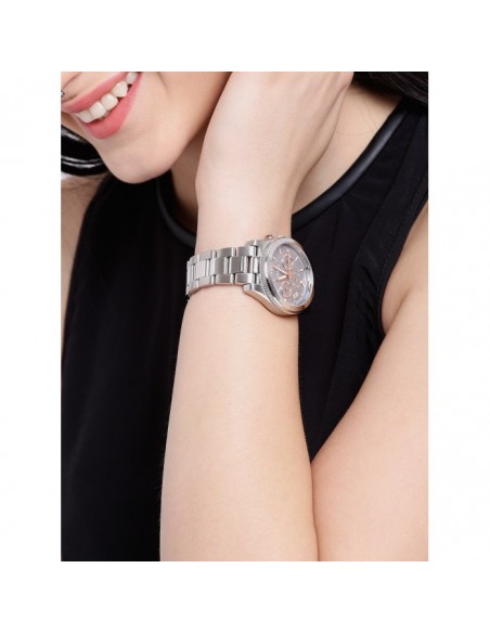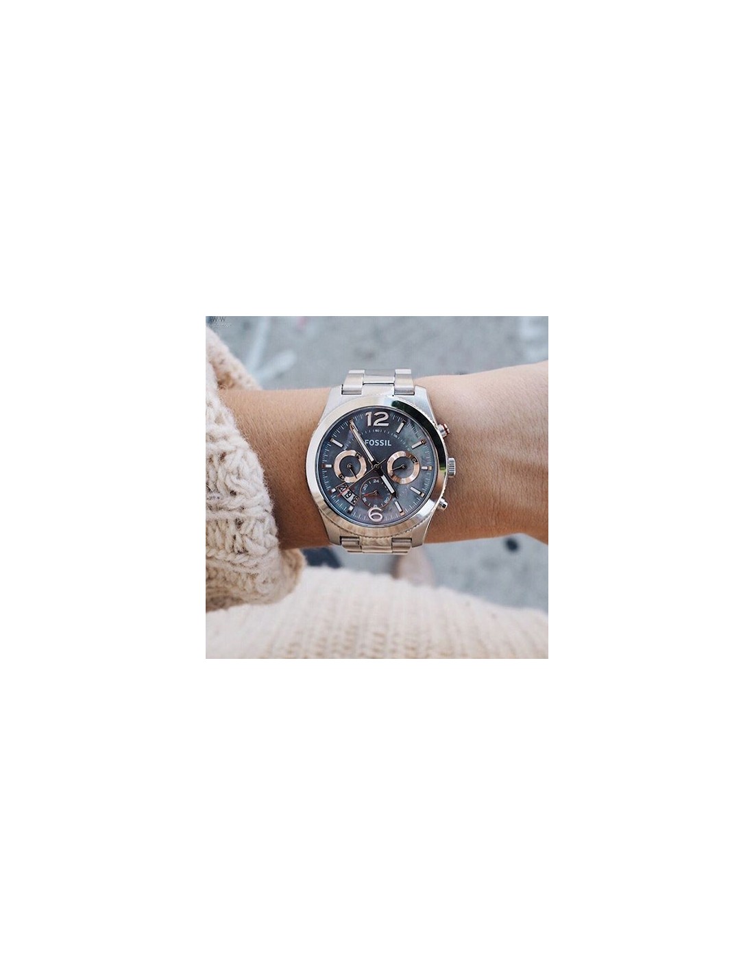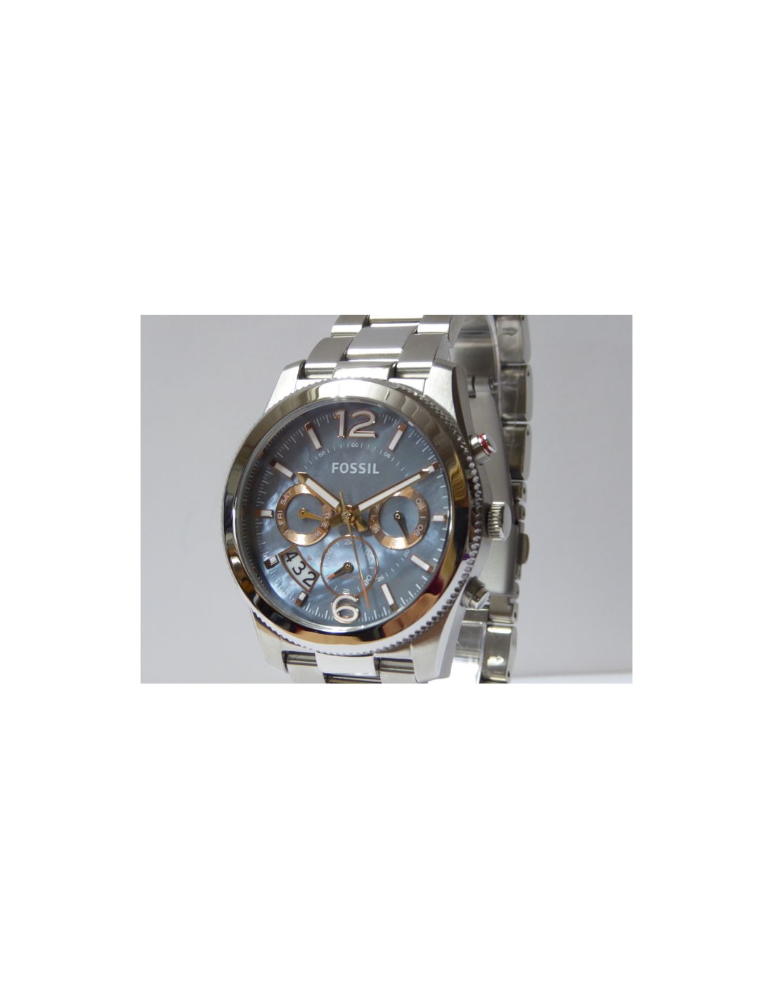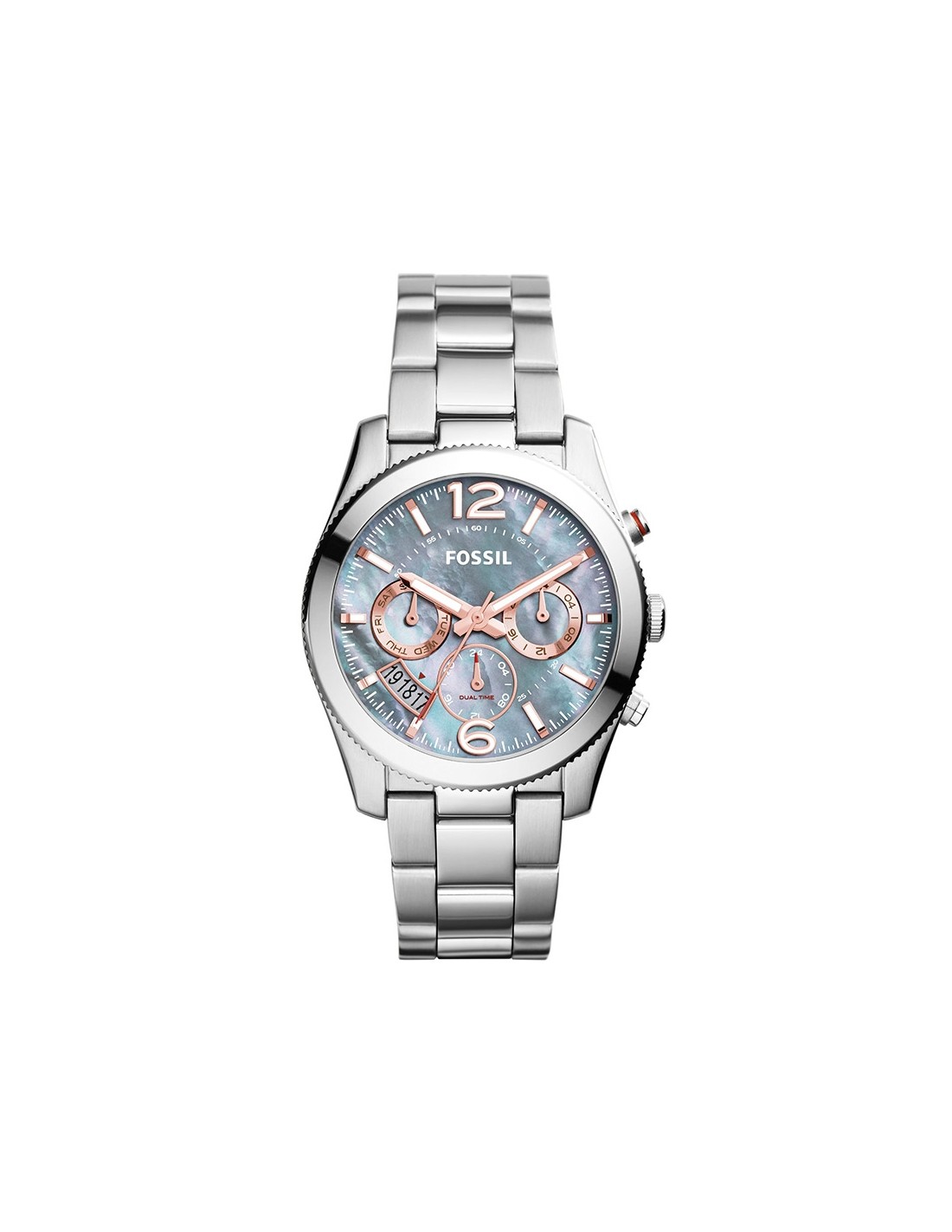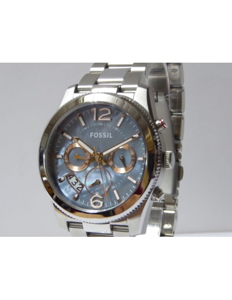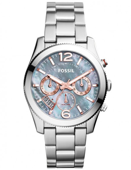 Ceas de mana dama Fossil Perfect Boyfriend ES3880, este un ceas fashion de 40mm cu mecanism japonez quartz Miyota JP25-7-8H-C,cadran sidef, afisaj data, zi, 24h, dual time, 50m WR si geam cristal mineral.