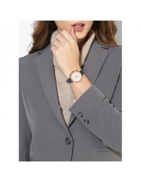 Ceas de mana dama Fossil Auriu Cecile AM4486, este un ceas pacat cu aur roz fashion de 40mm cu mecanism japonez quartz cu afisaj zi,data,24h si 50m WR.