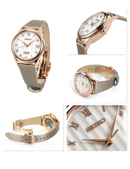 Ceas de mana dama Seiko Presage Zen Garden Sakura Daytime SRPF50J1 SRPF50 este un ceas automatic,mecanic made in Japan de 41,7 mm cu mecanism japonez 4R35, 30m, geam safir cristal.