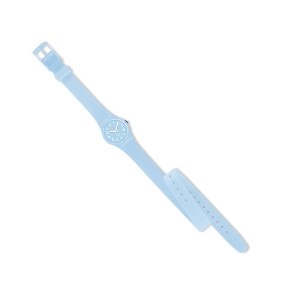 Acesta este un ceas de dama produs de catre renumita firma elvetiana Swatch. Face parte din seria Lady Collection. Bratara si carcasa sunt din plastic albastru. Cadranul albastru si rotund are cifre arabe albe. Rezista la apa. Ceasul tradeaza multa sensibilitate.