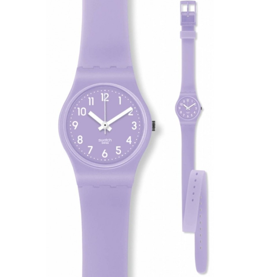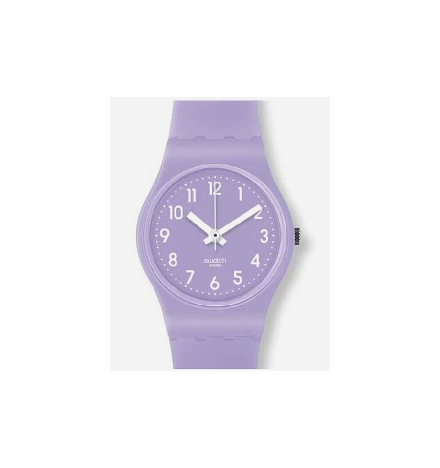 Acesta este un ceas de dama produs de catre renumita firma elvetiana Swatch. Face parte din seria Lady Collection. Bratara si carcasa sunt din plastic purpuriu mediu. Cadranul purpuriu mdiu este rotund si are cifre arabe albe. Rezista la apa. Ceasul tradeaza multa sensibilitate si finete in executie.
