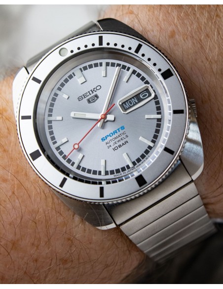 Ceas de mana original Seiko 5 Sports Seiko 5 Sports Special Edition SKX SRPK09 SRPK09K1 inspirat de modelul 5126-8130 din ani 60 este de 42,5mm diametru si 100m vine cu un mecanism japonez automatic calibru 4R36.