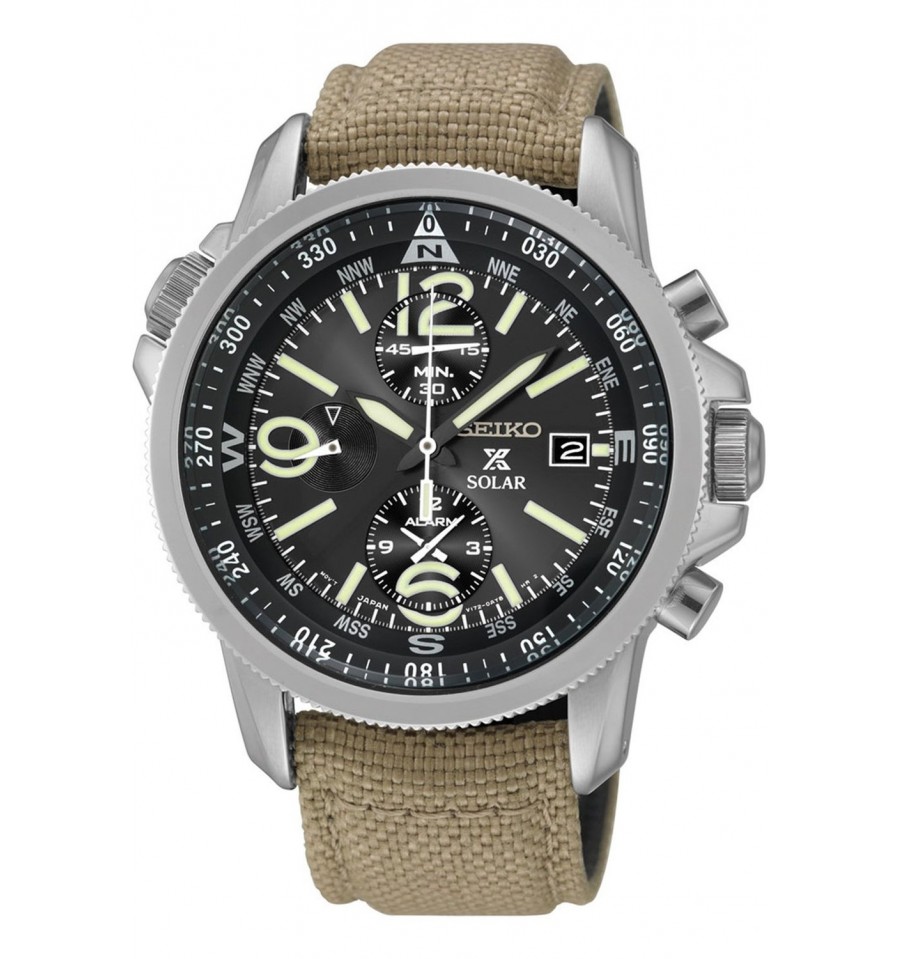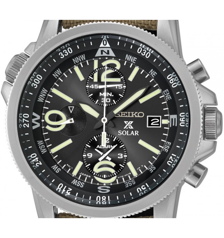 Ceasul SSC293P1 marca Seiko este un ceas care face parte din gama Prospex, avand un mecanism de functionare japonez bazat pe lumina solara. Ceasul are carcasa din otel inoxidabil, cu o curea din nailon, mecanismul ceasului functioneaza atat cu lumina naturala cat si cu lumina artificiala, avand geam din cristal mineral, functie de compas, alarma, functie de afisare a datei, indicatori fluorescenti si rezistenta la apa de pana la 100 m.
