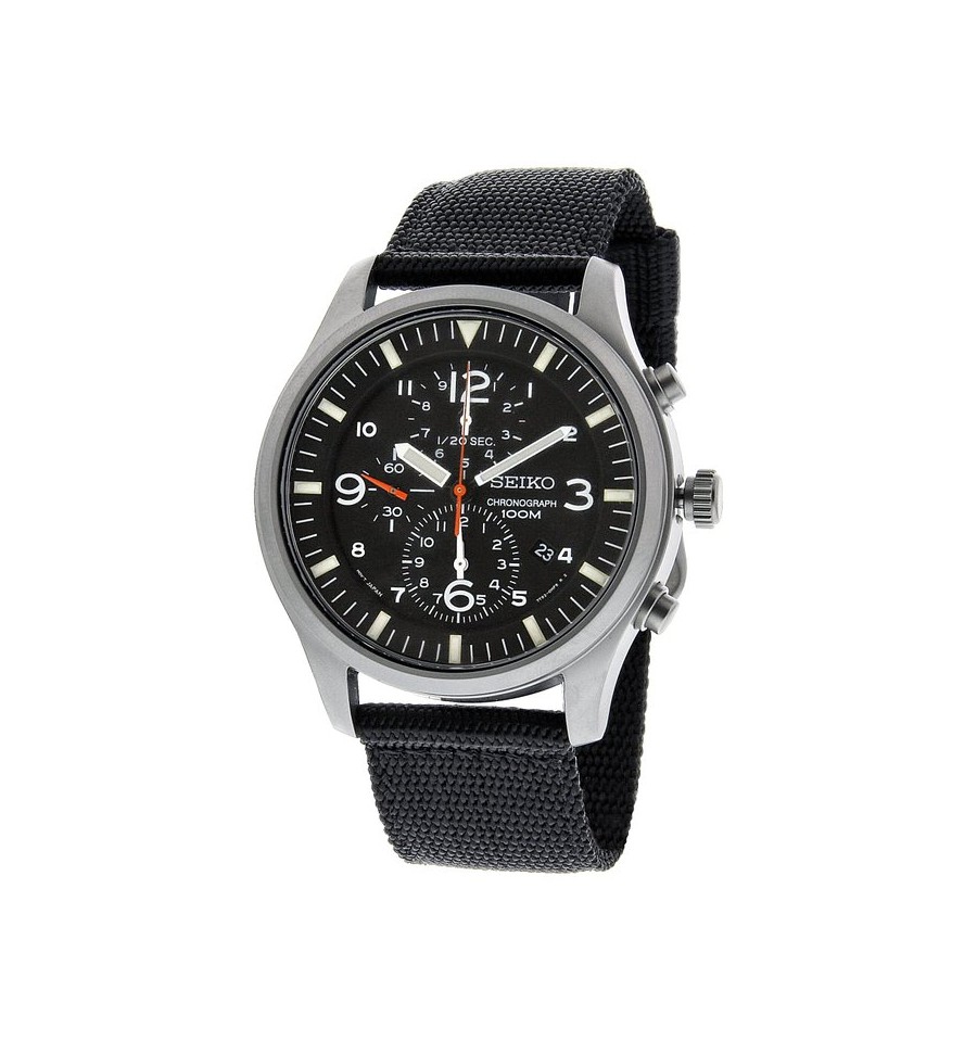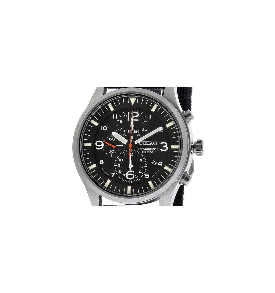 Ceasul SNDA57P1 marca Seiko este un ceas ce beneficiaza de o simplitate si o eleganta aparte dar care are si o constructie de calitate si un grad crescut de comfort. Ceasul are carcasa din otel inoxidabil de culoare argintie, cu o curea neagra din material textil, functie de cronograf, functie de cronometru, functie de afisare a datei, indicatori fluoarescenti pentru o vizibiliate cat mai buna chiar si in conditii de lumina slaba, mecanism de functionare bazat pe quartz, si rezistenta la apa de pana la 100 m.