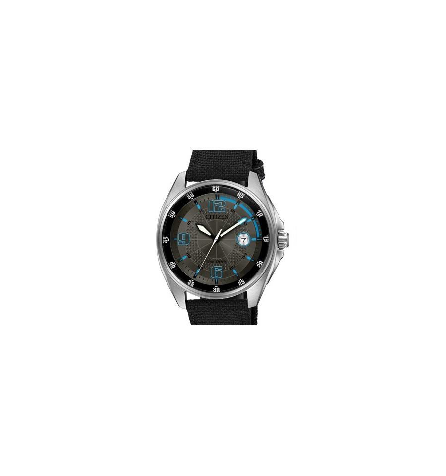Carcasa este din otel inoxidabil, bratara din material textil, cadranul din cristal mineral (rezistent la zgarieturi).