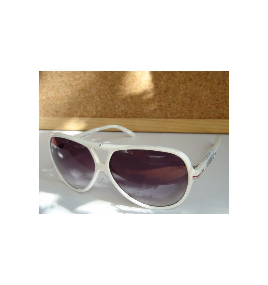 Aceasta pereche de ochelari de soare, MB 596 02, produsa de renumitul Mercedes Benz, are lentile Carl Zeiss de culoare violet si rama alba.