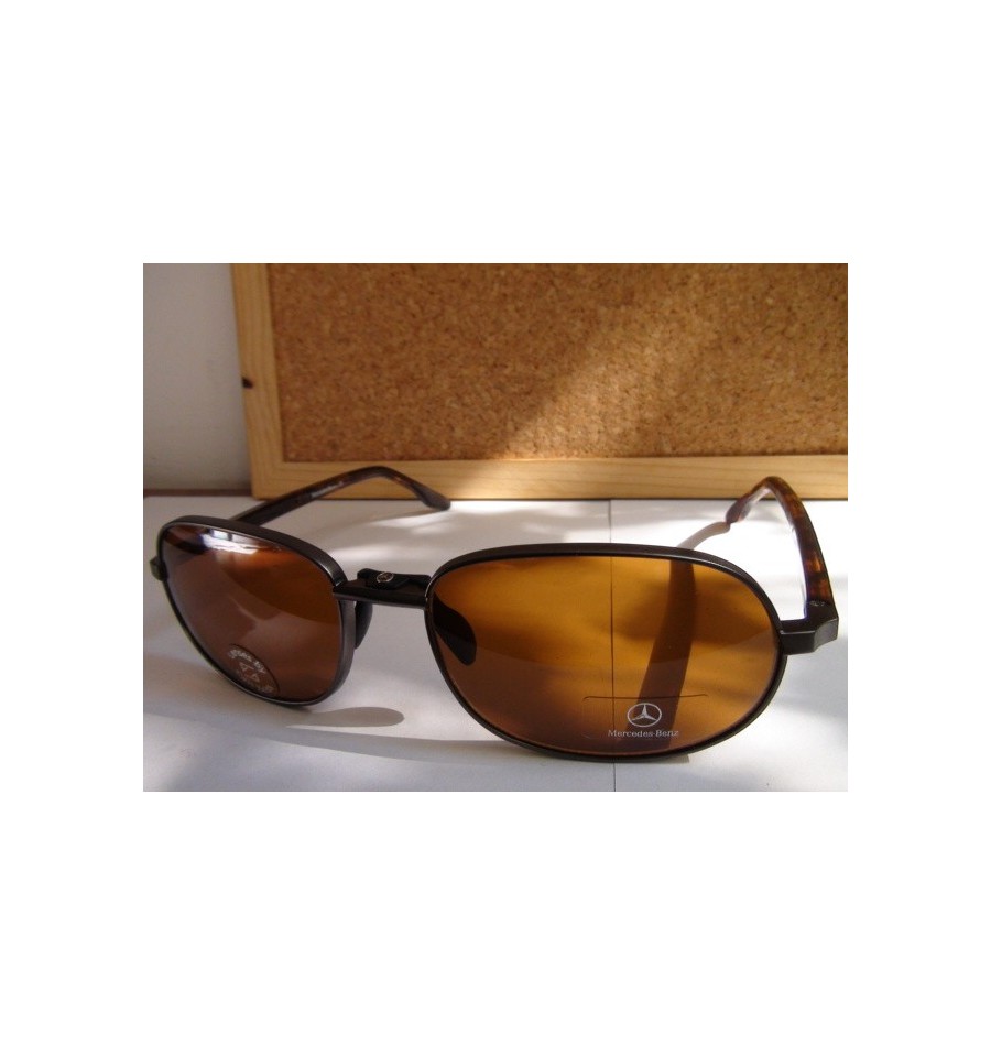 Aceasta pereche de ochelari de soare, MB 500 09, produsa de renumitul Mercedes Benz, are lentile Carl Zeiss si rama din metal maro si plastic maro.