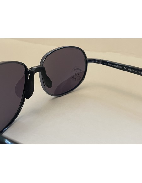 Aceasta pereche de ochelari de soare, MB 521 03, produsa de renumitul Mercerdes Benz, are lentile Carl Zeiss de culoaremaro si rama din metal auriu si plastic maro. Ochelarii sunt produsi in Italia si sunt 100% U.V.