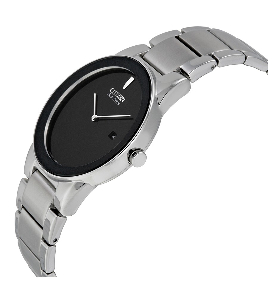 Ceasul de mana unisex original, Axiom AU1060-51E, produs de renumitul Citizen Watches, are carcasa si bratara din otel inoxidabil in nuante argintii, cadranul negru, geamul din cristal mineral, iar sistemul de inchidere este de tip deployant. Ceasul converteste orice sursa de lumina fie naturala, fie artificiala, in energie utilizabila prin tehnologia Eco-Drive.